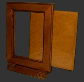 Den Mittelteil dieser Rahmenkonstruktion bildet eine stabilisierende Platte mit einer ummantelnden Klarsichtfolie, die sehr leicht herausgeschoben werden kann und in die dann beidseitig die Fotos eingelegt werden. Einfach zurück in den Rahmen rutschen lassen und das war es dann auch schon. Rahmen ohne Standfuß |