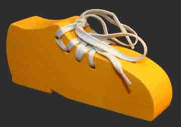 Zur Zeit sind noch Bindeschuhe in den Farben Grün, Orange und zwei Nuancen Gelb vorrätig. Zwar kann ich jederzeit Schuhe in dem von Ihnen gewünschten Farbton anfertigen, die Produktion dauert aber - aufgrund der langen Trockenzeiten des Oberflächenschutzes - mindestens 1 Woche. |