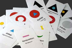 Wortsymbole 18 laminierte Karten im A6-Format mit farbigen Wortsymbolen und Symbolbeschreibung in deutscher und lateinischer Benennung rückseitig mit magnetischen Haftstreifen für die Verwendung an Metalltafeln |