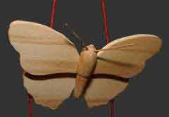 Selbst ohne Funktion würde dieser naturbelassene und klarwachsgefinishte Schmetterling mit seinen jeweils zweiteiligen Flügeln aus 6mm Pappel-Sperrholz und seinem gedrechselten Körper ein schönes Deko-Stück abgeben. Noch besser aber ist seine Eigenschaft, an den langen Schnüren emporklettern zu können - und auch wieder abgelassen zu werden. Nicht nur Kinder haben ihre Freude an solchen Kletterelementen. |